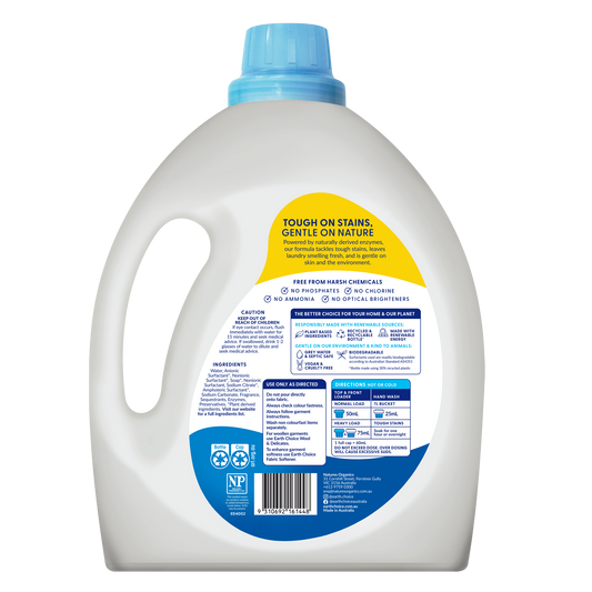 Our wide range of Earth Choice laundry liquids are designed to remove the toughest of stains with the power of plant-based ingredients. From ultra concentrated, value for money to our Australian native fragrance range. There is an Earth Choice laundry product that is perfect for your home.